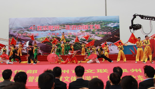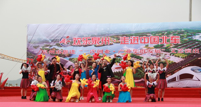 据新闻中心杨艳红报道:为实现中国梦,创建美丽泉州台商投资区。3月25日下午13时,由泉州市宣传部、泉州市文联、泉州广播电视台主办,泉州台商投资区党工委党群工作部、泉州台商投资区管委会教育文体旅游局承办的欢乐泉州•走进中国北车—泉州市推进“二次创业•产业集群发展”文艺演出在泉州台商投资区北车轨道装备有限责任公司隆重举行,我院吴其萃董事长应邀出席,100多名师生参加了本次活动。