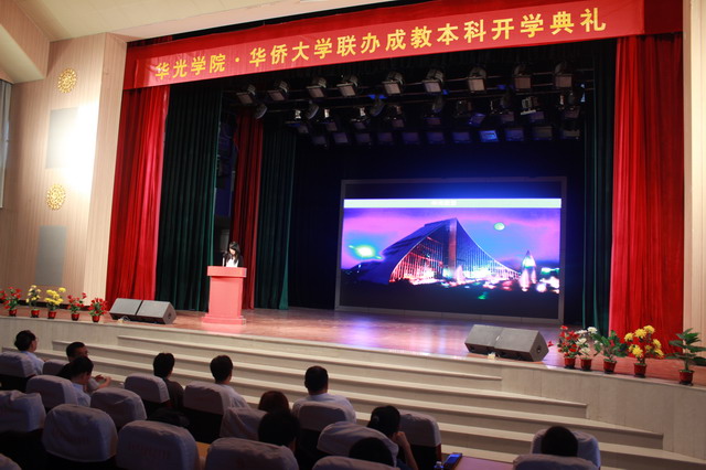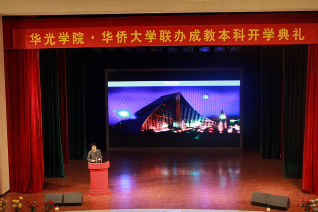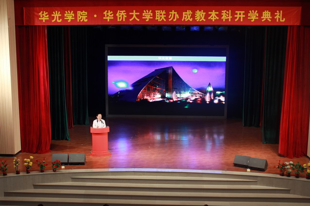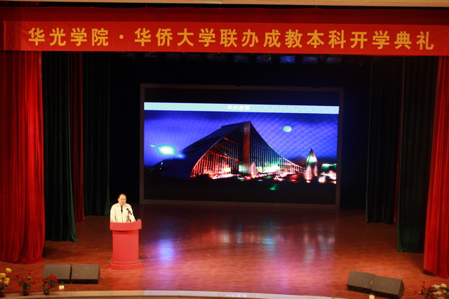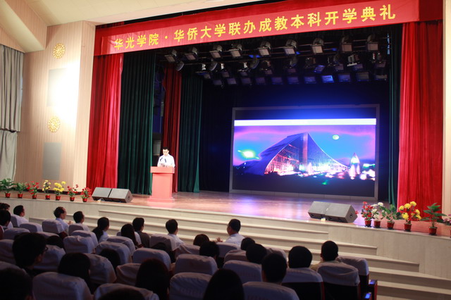 5月7日下午,华光学院•华侨大学联办成教本科开学典礼在华光学院吴文季音乐厅隆重举行。华侨大学继续教育学院院长庄培章、副院长刘以榕,华光学院领导王建成、吴华宇、贺毅行、林述琦等出席了开学典礼。2013级200名华侨大学成人教育本科新生和400名华光学院学生参加了开学典礼。