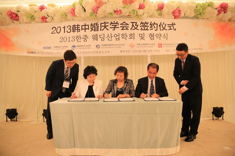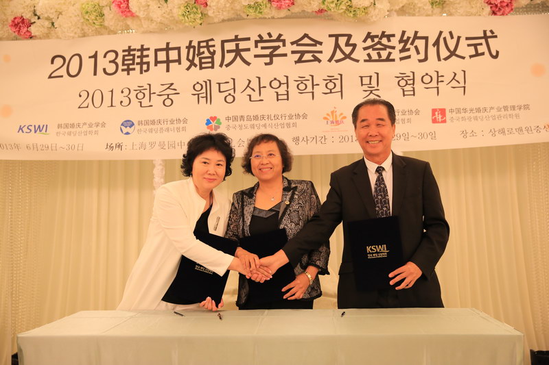6月29日,由华光婚庆产业管理学院、上海婚庆行业协会、青岛婚庆礼仪行业协会、韩国婚庆产业学会和韩国婚庆行业协会联合主办的2013中韩婚庆学会恳谈会暨签约仪式在上海罗曼园婚礼会馆拉开了帷幕,韩国五所大学也参与其中,共同交流中韩两国婚庆动态。我院吴其萃董事长应邀出席该次活动,并与韩国婚庆产业学会、青岛市婚庆礼仪行业协会签订了“中韩婚庆产业交流友好合作协议”。