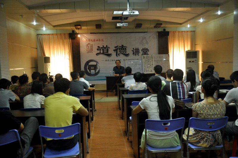 为深入学习贯彻党的十八大精神,扎实推进社会主义核心价值体系建设和公民道德建设工程,应我院邀请,泉州诗词学会、泉州楹联学会、惠安县文学协会会员,惠安陶行知研究会理事张焕欣副教授于8月13日上午来我院举行“道德讲堂”讲座,学院王建成院长、党委周文林书记等院党政领导、以及全体教职员工出席了本次讲座。