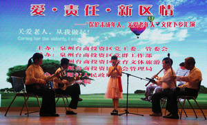 2013年10月18日下午,在我院和洛阳镇人民政府协办下于我院吴文季音乐厅举办了泉州台商投资区党工委管委会主办的爱•责任•新区情——“保护未成年人关爱老年人”文化下乡汇演,本次莅临本场汇演的领导有:泉州市老龄办副主任商黎霖,泉州台商投资区社会管理局副局长老龄办主任林炳金,泉州台商投资区涉老龄办主任陈良奎,还有来自新区各个乡镇的老年朋友代表们。