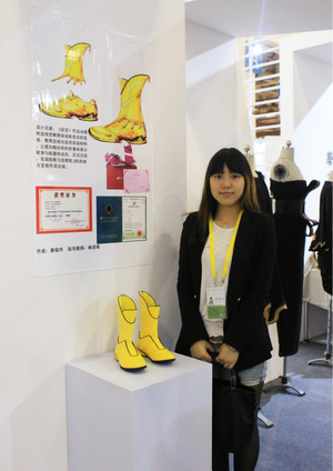 (1)华光鞋服学院11级鞋类设计与工艺专业学生蔡依玲设计的《蜕变》“新型鞋靴”作品;
