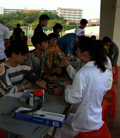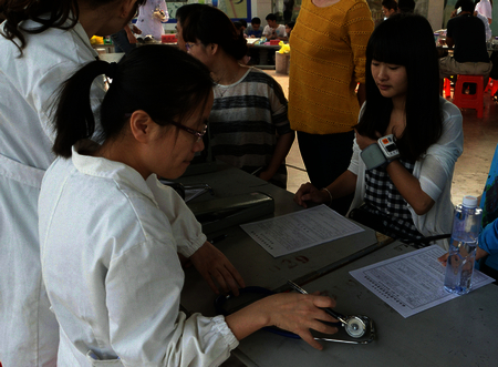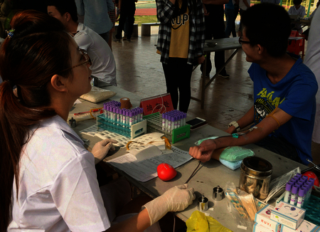 各学院积极响应本次献血活动,从填表登记到检查、测血压、抽血、验血,整个过程始终都在一种轻松、愉快地氛围中有序进行。通过体检的学生个个兴奋不已。