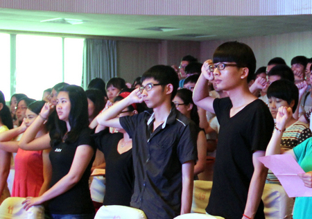 大会在激昂的《国际歌》中拉开序幕。党旗下,新、老党员举起右拳,表情严肃,庄严宣誓。随后预备党员郑馨怡同志和老党员代表郑桂梅同志分别作了精彩发言,表示一定要响应党的号召,履行党员义务,做一名合格的党员,为党的事业奋斗终生。周文林副书记代表校党委对新加入党组织的同志表示衷心的祝贺和欢迎,并对新党员提出了殷切的希望和具体要求: