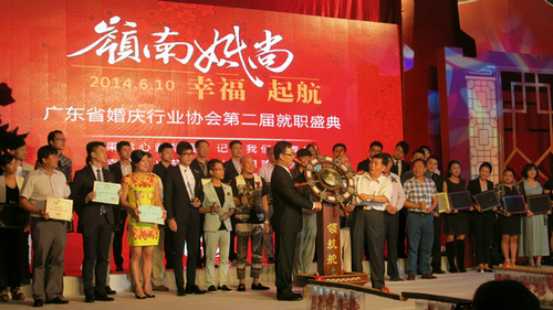6月10日,广东婚庆行业协会第二届就职典礼在广州隆重举行。林强任会长,我院婚庆学院副院长林雪吟女士任常务副会长兼秘书长。我院董事长吴其萃、婚庆学院院长曹仲华应邀出席大会。该会聘请曹院长为高级顾问,聘请我院为战略合作伙伴单位。