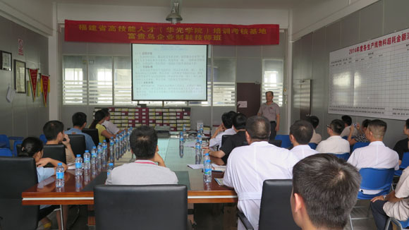 8月8日华光学院鞋服科学研究所林述琦高级工程师、林娟和骆世祥2位国家一级鞋类设计师,前往石狮富贵鸟集团,参加福建省高技能人才(华光学院)培训考核基地,富贵鸟企业制鞋技师班开班并授课。