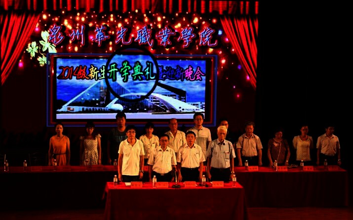 在庄严的国歌声中,开学典礼正式开始。开学典礼由郭院长主持。刘丽岚老师、学生会副主席米林涛同学、商学院林民德同学分别代表教师、老生、新生发言。 周文林副书记致辞欢迎2014级新生的到来,并寄予了殷切的希望。周书记述说近几年华光的蓬勃发展:2014年华光申报并通过华光文博园3A级景区,摄影学院教师作品分别入选世界华华侨人影展、2013阿尔塔尼国际摄影展,鞋服学院获得了“一种健身跑鞋”的多项专利,我校学生也在各级比赛中频频获奖。鼓励同学们奋发向上,尽快融入到华光这个大家庭里,创造属于自己的精彩人生。 随后,团委黄冬梅书记代表华生奖学金全体获奖学生从华生图片有限公司负责人手中接过奖学金! 最后,开学典礼在优美的《华光之歌》中结束。