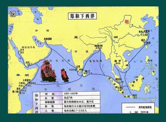 到了15世纪明朝,由六十余艘宝船带队、两万多海员组成的“郑和七下西洋”,航程途径东南亚,横跨印度洋到达东非。那更是空前而绝后壮举,至今也不亚于美国的特混舰队的规模。中华民族曾经是对人类做出巨大贡献的航海冠军。