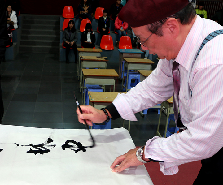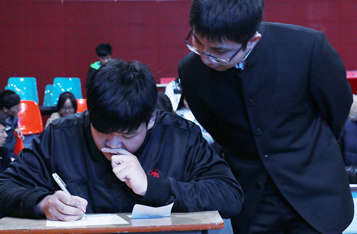 随着比赛的开始,各位评委纷纷走下场观看参赛同学的作品,现场气氛十分活跃。硬笔比赛结束后,刘艳萍老师对参赛选手的书法做出点评。随后开始了第一次抽奖活动和魔术表演。接下来的第二轮毛笔比赛结束后,吴峻峰老师为参赛作品作出点评。经过激烈有趣的毛笔比赛之后,我院文艺部及跆拳道社为同学们带来了精彩表演。