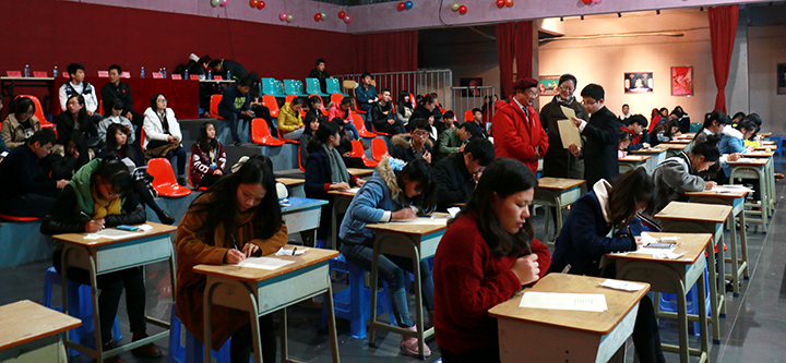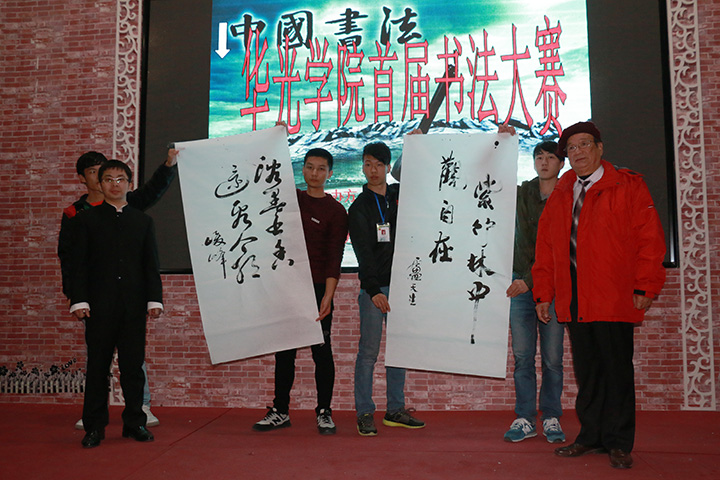 12月26日晚上19点30分,由建工学院团总支学生会主办、建工学院两会团总支宣传部协承办、大学生服务中心协办的华光学院首届书法大赛在华光电视台演播大厅拉开帷幕。出席本次大赛的评委是:卢天生督导、刘艳萍、吴峻峰、吴思老师;嘉宾是:党办主任邢丽珍、建工学院团总支书记李秋雯、田老师