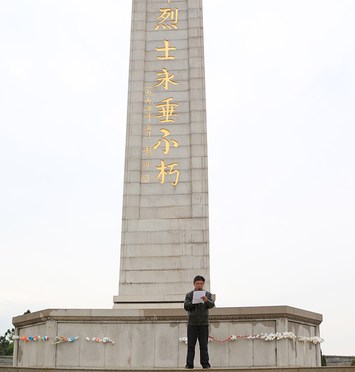 当天下午2:30分,各部门人员在烈士墓前整队完毕,整个现场井然有序。主持人首先发表开场白,为各位烈士默哀一分钟。