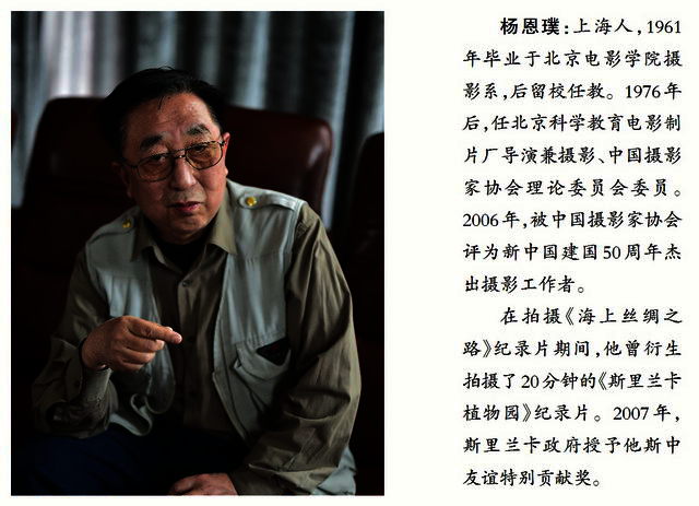 杨恩璞:这不是我一个人的功劳。只是刚好因为天时、地利、人和,历史刚好巧遇在我身上。背后,有许多历史学家、航海家的贡献,包括各部门的同心协力。海外的华侨也十分关心,有的提供历史素材,有的积极协助摄制组的工作。没有大家,根本就没有这个片子。