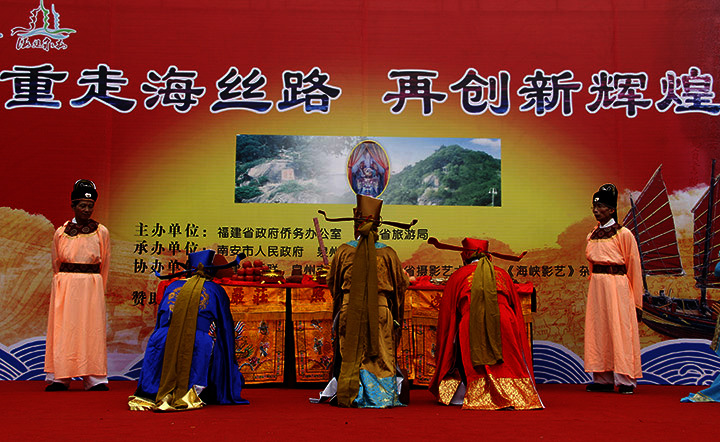 旗幡舞动,鼓乐喧天。2015年5月17日上午10时,作为“重走海丝路·再创新辉煌”活动的启动仪式,九日山仿宋祈风盛典古仪式在九日山延福寺前广场盛装上演。