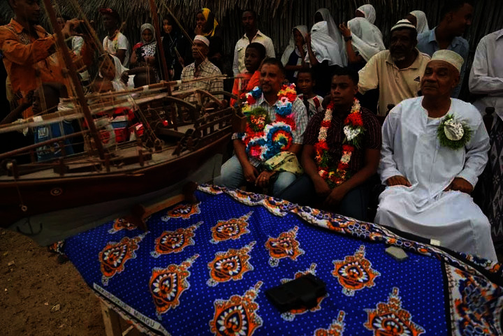 5月22日上午,乘小快艇前往西尤村,这是一个充满传奇的小岛!传说六百年前,有一艘中国商船在拉穆群岛附近触礁沉沒、有几十个中国水手逃到了附近的上封村定居,后来迁到了现在的西尤村並繁衍至今。最高峰时全村有一万多人。虽然没有文字记载,但时至今日,村上的人们依然世代相传,坚信他们是中国人的后代!十年前,南京电视台曾登岛采访了一个岛上的中国大妈,並将她女儿接到南京医学院读书,至今还在南京工作。今天,采访的重点还是中国大妈。