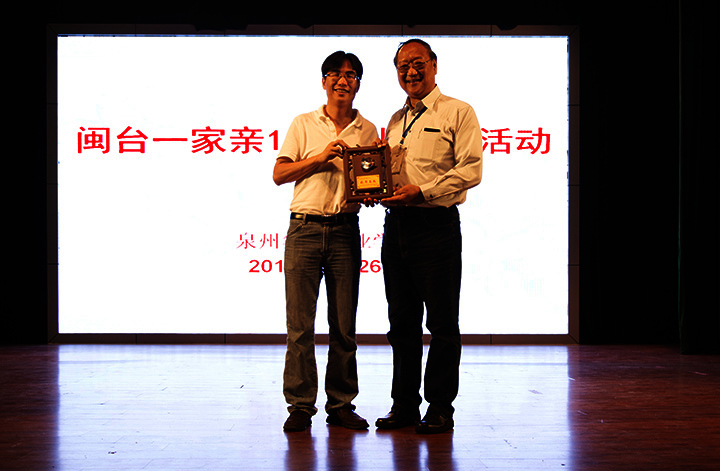 泉州是台湾汉族同胞主要祖籍地,两地一衣带水根连根。为了充分发挥泉州与台湾“五缘”关系密切的优势,加强两岸青少年的交流和友情,增进台湾青少年对闽南文化的了解,5月26日是由泉州市教育局、泉州市教育基金会主办的“闽台一家亲1+1文化交流活动”的第三天。当天下午,来自台湾新北市议员蔡叶伟先生、邓公国小校长张荣辉先生、淡水国中校长林裕国先生、竹围高中校长吴宗珉先生、三芝国中校长曾静悦女士、石门国中校长郑杏玲女士、代正德国中校长王启浩先生与各中学的老师同学们前来我校与师生交流,并参观了华光文博园,包括郎静山、吴印咸和陈复礼三位摄影大师的艺术馆、余光中文学馆、吴文季音乐厅、承运阁(“全球粥会”馆)等系列展馆。