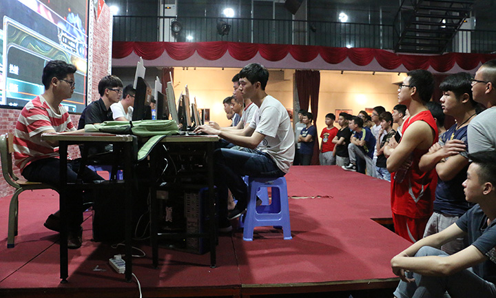 进入华光电视台,我们可以看到一片热情洋溢、激情澎湃的场面,到场观众不光是热爱游戏热爱电竞的男同学,还有很大一部分是女同学,对于游戏和电子竞技的热爱已经不再专属于男同学们了。随着后来的观众加入,现场一度出现了“爆棚”的情况,可见同学们对于联通杯沃派“英雄联盟”校园争霸赛的关注度之高。