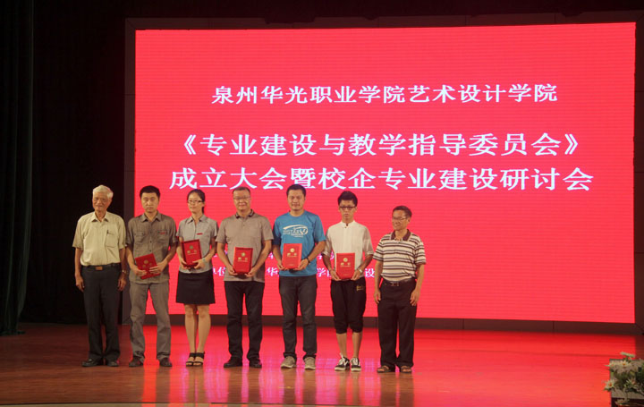 在欢快的乐曲声中,郭亨群院长、林鸿海副院长为受聘的各位委员颁发了聘书。受聘的校外专家成员分别是:福建万龙筑业设计工程有限公司总经理陈春龙、九鼎装饰股份有限公司泉州分公司总经理李新中、厦门州一映画传媒有限公司总经理余开水、福州天宏创世文化传播有限公司总经理王小明、泉州福勋装饰设计工程有限公司总经理周文福、泉州名匠装饰有限公司惠安公司设计总监陈明苇、泉州速腾网络科技有限公司郭伟峰、泉州施朗室内设计事务所设计总监施江滨,泉州广告雕刻有限公司邓跃彭等。