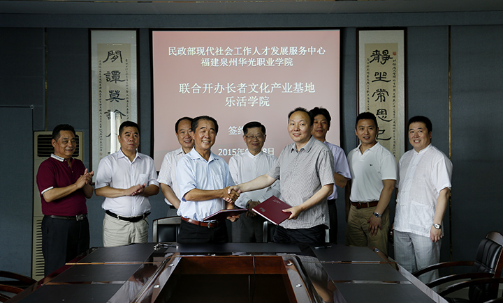 6月18日, 由现代社会工作人才发展服务中心、全粥总长青安养工作辅导小组与泉州华光职业学院共同建立的“长者文化产业基地”签字仪式在我院三角楼会议室举行。