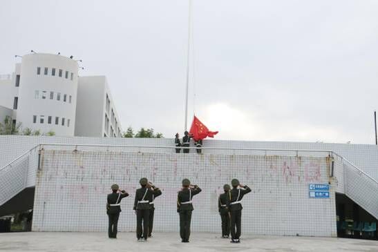 本学期的首次升旗仪式圆满结束,希望新生在大学生活这张白纸上描绘出人生新图景。