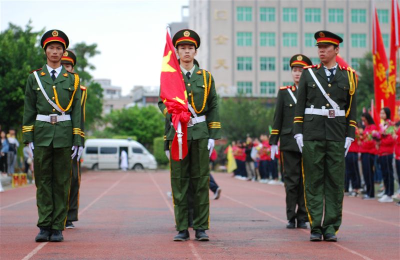 伴随着慷慨激昂的运动员进行曲,国旗方阵、校旗方阵、五环旗方阵、校训方阵、彩旗队、花束队、裁判员方阵、教工方阵、各二级学院代表方阵、表演方阵着装整齐,斗志昂扬,高喊着振奋人心的口号,整齐划一地陆续从主席台前经过。