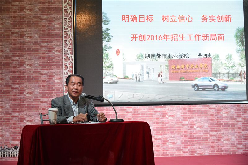 12月19日,湖南都市职业技术学院曹四海副院长到我校开展关于学校招生方面的讲座,学院董事长吴其萃及全体教师参加了此次讲座。
