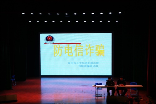 为提高学生日常安全防范警惕性,掌握防电信、网络诈骗技能,12月23日下午,我院在吴文季音乐厅举办防电信诈骗专题讲座,洛阳派出所的陈警官、王警官为15级全体学生作了精彩的演讲。