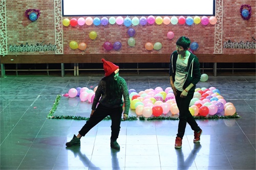 晚会开始,动听的音乐响起了,主持人向大家说明了晚会的游戏规则,大家哄堂大笑,气氛十分热烈。首先开始的是田甜与邓涵月合唱的歌曲《爱要坦荡荡》,两人的声音互相搭配,犹如天籁。一场惊艳的表演,由华光电视台成员带来的街舞,带动全场。董事长也一展歌喉,与华光电视台的龚铭同学一起演唱了一曲《康定情歌》,结束后大家掌声雷动,为董事长的演唱喝彩。游戏环节,嘴传纸巾和腿夹气球等,全场轰动,气氛火爆。