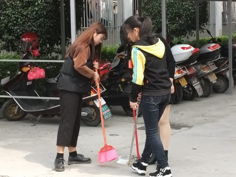 3月7日中午,我院学生党员志愿者服务队利用午休时间,在党办邢丽珍老师的带领下,对校园卫生进行了大扫除。“泉州华光学院学生党员志愿者服务队”旗帜飘扬在校园,拿着扫帚、抹布、竹竿、铁钳等卫生工具,胸前佩戴带党徽及“学生党员志愿者服务队队员”标志的党员队伍给校园增添了一道亮丽的风景线,也给校园带来了卫生环境的优美与洁净。