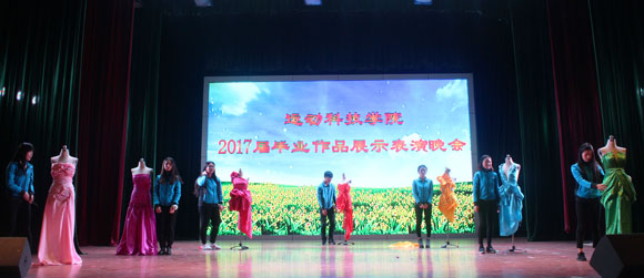 晚会上2017届毕业生将自已设计制作的服装、鞋品以及现场鞋样设计、立体裁剪、啦啦操、武术以及作品转化产品的运动鞋、运动服装、运动裙等节目,用这毕业作品展示表演的方式,呈交学习成果,引起在场观众阵阵掌声喝彩。