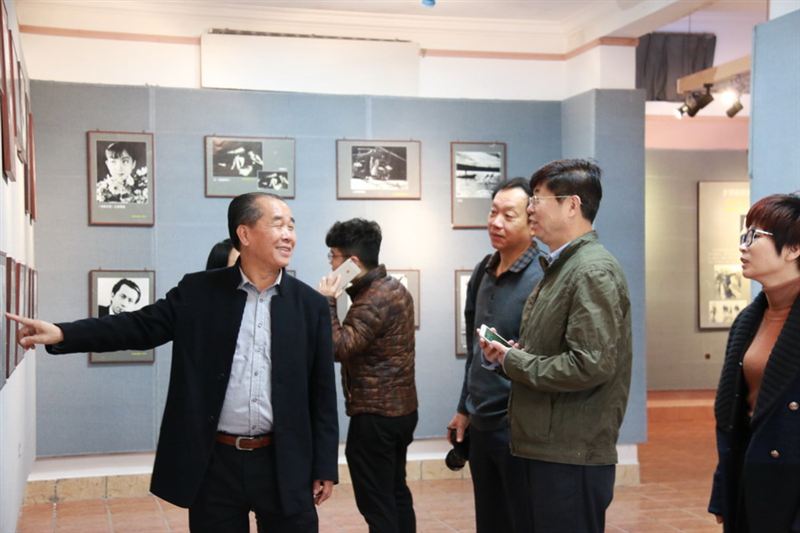 (董事长吴其萃向李主任介绍照片拍摄时代背景)