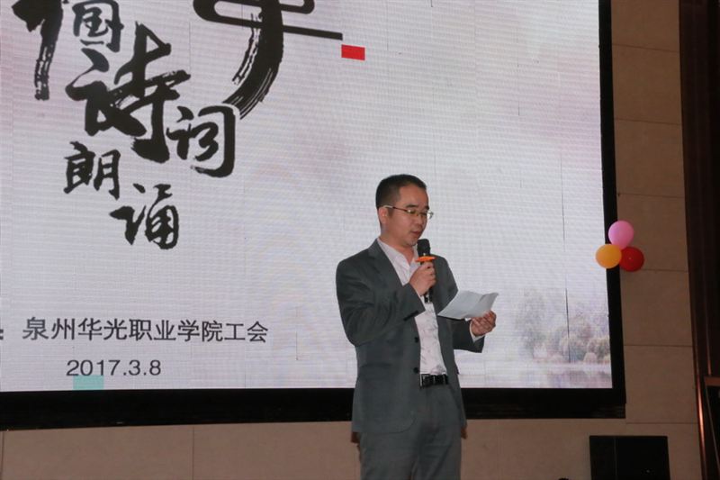 阳春布德泽,万物生光辉。在这春回大地的美好三月,又一个“国际三八妇女节”翩然而至。为共祝佳节,让华光学院的全体女教职工感受董事会、校领导对女性的关怀和爱护,感受作为女性的自豪和快乐,感受作为女性独有的优雅和魅力。3月8日,在董事会及校领导的大力支持下,由我校工会主办的“庆祝三八妇女节——华光学院中国诗词朗诵”活动隆重举行。全体教职工参加,工会主席石东龙主持活动。