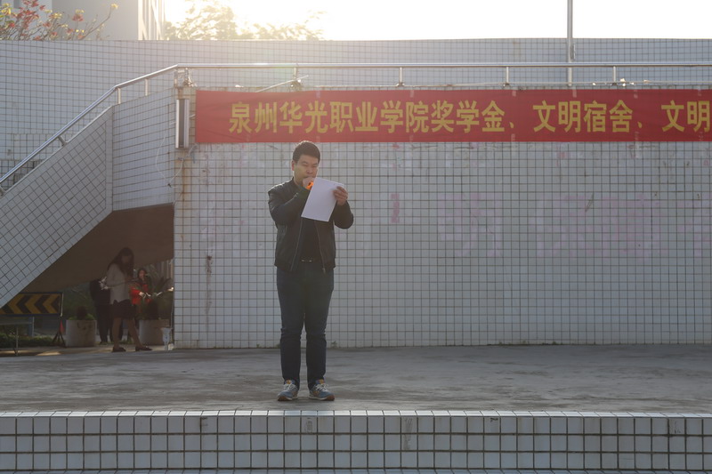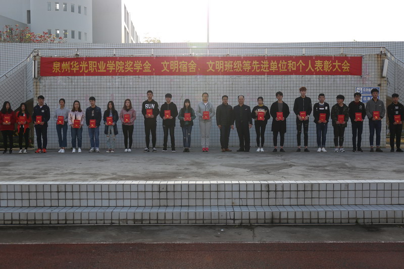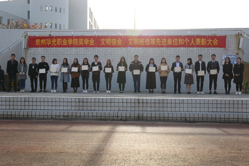 3月27日早上,阳光普照,微风和煦。升旗仪式结束后,泉州华光职业学院2015-2016学年奖学金、文明宿舍、文明班级等先进单位和个人表彰大会在南校区操场隆重举行。庄严的国旗下,全体师生共同见证了这次表彰大会。