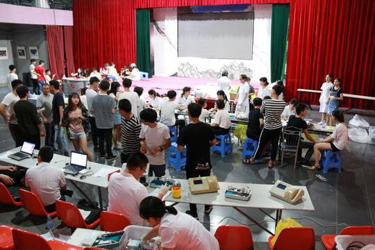 同学们在工作人员的指导下,认真填写献血登记表、测量血压、抽血化验,经血液检验合格后,医生对献血同学进行采血工作。许多同学在拿到红色小本子的时候流露出了喜悦和自豪的表情。