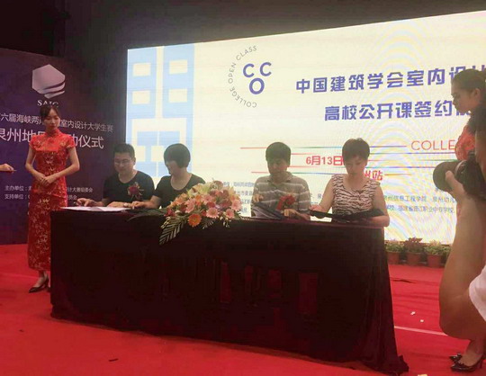 近日,华光职业学院艺术设计学院受邀参加2017年中国建筑学会室内设计分会CIID第52泉州专业委员2017第六届海峡两岸四地室内设计大学生赛启动仪式暨中国建筑学会室内设计分会组织开展“高校公开课”系列活动签约仪式并授牌,我校艺术设计学院副院长范楠楠出席本次签约活动。