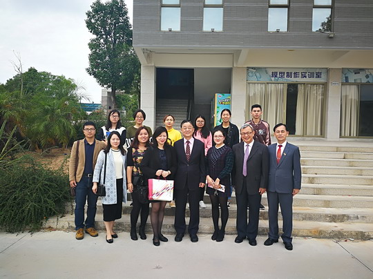 11月6日上午,台湾大汉技术学院校长宋佩瑄,珠宝系主任蔡印来、主任赖锦文,国际交流中心主任陈美玲一行莅校参访。