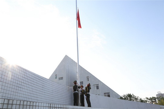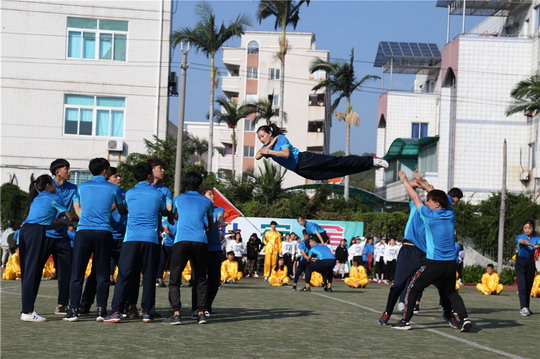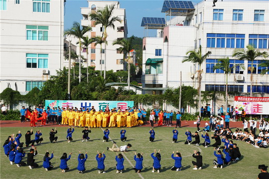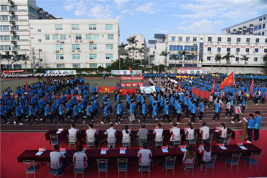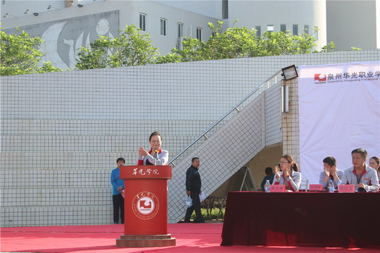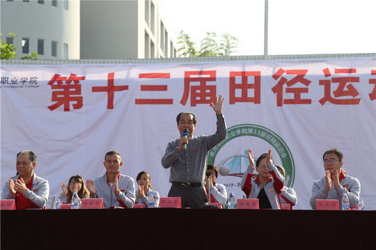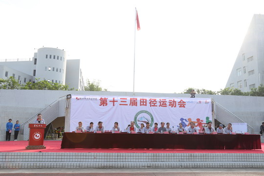 升国旗,全体师生奏唱国歌,当五星红旗飘扬在运动场上空的时刻,董事长吴其萃隆重宣布泉州华光职业学院第十三届田径运动会正式开幕!