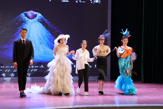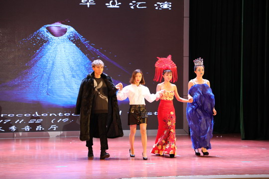 晚会开始前,随着酷炫超大电子屏幕闪烁,记录着15级人物形象设计专业三年来成长点滴的照片滚动播放,他们的青涩模样渐渐被自信出众取代,他们迷茫的样子渐渐变得坚定果敢。