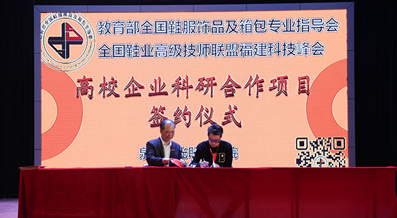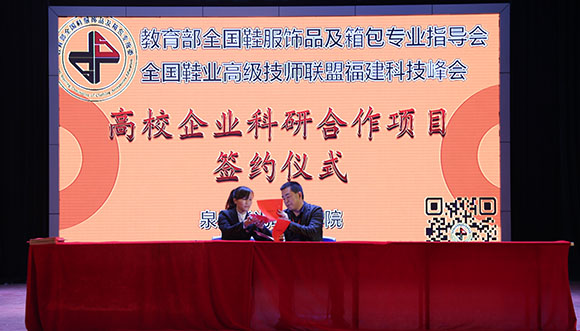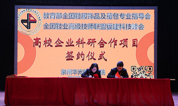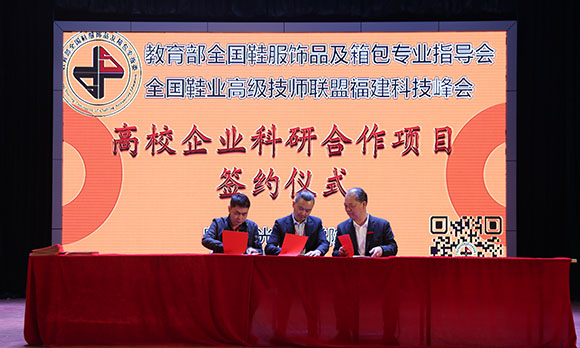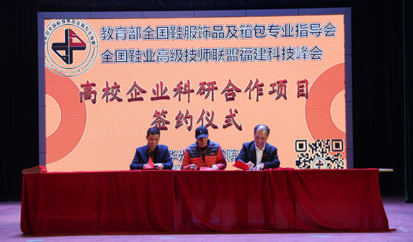 教育部全国鞋服饰品及箱包专业指导委员会全国鞋业高级技师联盟福建科技峰会参与五大平台签约企业37家,横向课题6项签约企业12家,指导学生创业注册工商营业执照4项,取得丰硕成果。