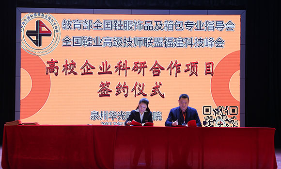 《保健鞋服协作研发平台》由泉州华光职业学院和全国鞋业高级技师联盟福建分会发起,首期6家企业签约参与项目运行。