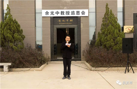 吴董事长代表全球粥会总会长陆炳文博士致悼词,追忆与余光中教授结缘点滴,感恩余光中教授一生笔耕不辍,为后世留下诸多经典,暖人心怀;感恩余光中教授为我校教育事业的关怀备至。