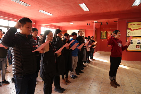 在全校上下深入学习宣传贯彻党的十九大精神的热潮下,12月20日下午,我校在吴印咸纪念馆举行新党员入党宣誓暨老党员重温誓词仪式。校党委副书记陈雄华,校党委委员、办公室主任谢志贤,各党支部委员及全体新党员参加仪式。宣誓仪式由校党委委员、党办主任郑桂梅主持。