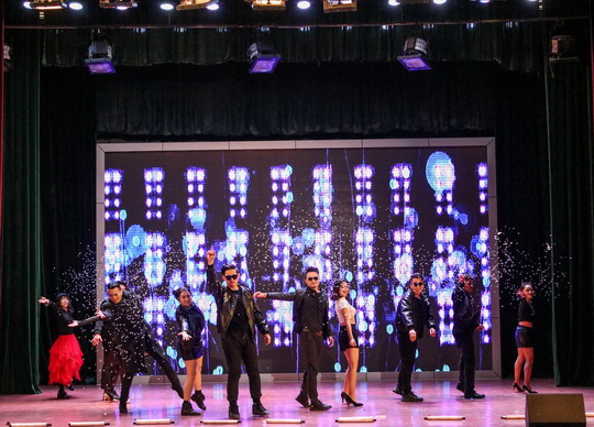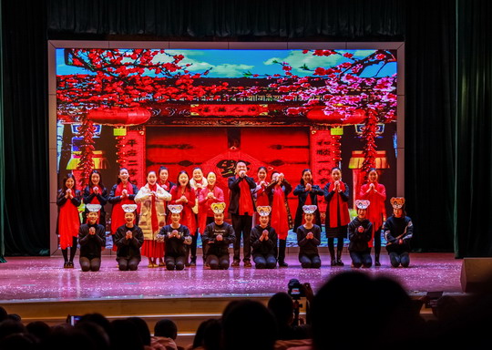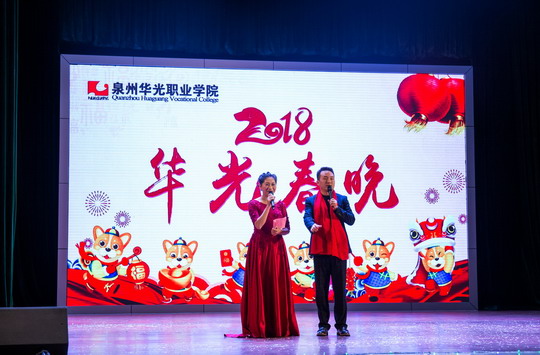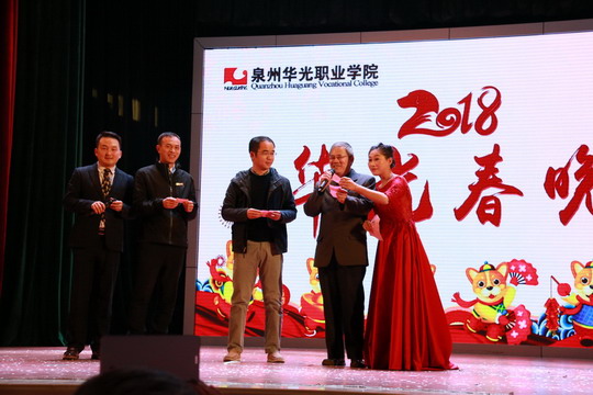 此次春节晚会的节目全部由华光教职员工和部分学生自导自演。晚会以董事长夫人陈秀美和校长陈雅芳领衔的广场舞《最炫民族风》开场,动感的音乐伴随轻盈优美的舞姿立刻点燃了观众的热情,现场一派喜庆祥和。晚会节目丰富多彩,有别出心裁的走秀、婀娜多姿的舞蹈、余音袅袅的歌曲、新颖的服装立体改装、慷慨激昂的朗诵、令人捧腹的小品以及各种综合类节目等等,令人目不暇接,大饱眼福。各二级学院、各部门全情参与其中,大家载歌载舞,其乐融融,好一派团结和谐的大家庭氛围。