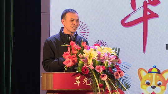 党委副书记陈雄华致新年贺词,他代表学校为全体师生送上新年祝福,同时感谢全体教职员工在过去的一年为学校的发展所做的贡献,他说,2018年是华光实现三大目标承上启下的重要一年,希望全体教职员工精诚团结,紧密合作,共同推动学校的跨越发展。