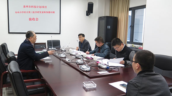 验收会在泉州市台商投资区会议中心召开,由台商区科技科主持,我校副校长林述琦、科研处副处长林娟参加会议。泉州市科技局委派华侨大学、泉州师院等单位组成的专家组,对科技项目研究内容提出质询,经过项目主持人阐述答辨,《运动力学结合第三医学研发童鞋保健功能》科技项目顺利通过专家组验收。