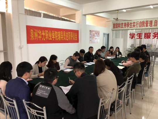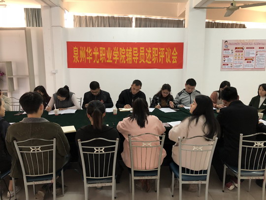 黄冬梅处长主持会议,辅导员依次进行年终述职总结与自我评价。摄影学院辅导员张菁莹分享了“三抓一丰富”的管理模式;庄端颖分析了所带的16级大专生与17级五专生的特点,摸索出了其分层管理模式;商学院辅导员吴翠莹分享了家校配合带来的学生管理工作格局的改变;郭晶晶分享了毕业班工作开展的心得及以荣誉鼓励方式形成的班级间良性竞争;运动科技学院辅导员庄雅靖说她对于教育学生就是换位思考,多站在学生的角度和立场去考虑问题,学生会更加与你亲近,更容易的走进学生的内心,了解学生之间更真实的情况;艺术设计学院辅导员林加将着重介绍本学院的班会制度、日常管理制度等。