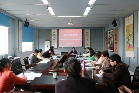 1月19日,我校在办公楼三楼会议室召开2017-2018学年第一学期第六次教学工作指导委员会会议,主要对近期举行的期中教学检查、校内专业评估、校级教学成果奖、基于工作过程课程改革的评审结果进行公布,总结本学期教学工作,同时对下学期教材发放和课表的编排工作进行部署。校领导,各二级学院(部)、信息与实训中心及督导室负责人参加会议。会议由教务处副处长陈春主持。