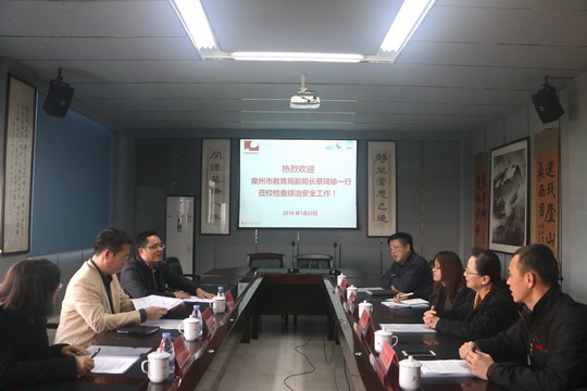 1月23日下午,泉州市教育工委委员、市教育局副局长蔡琦瑜,泉州市教育局学校安全科科长陈荣煌,泉州市教育局中教科科员玄甲红组成的检查小组,对我校2017年度校园综治安全工作进行考评检查,旨在进一步深化平安校园建设,全力维护学校安全。