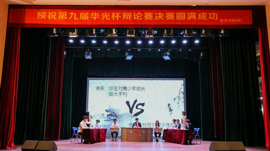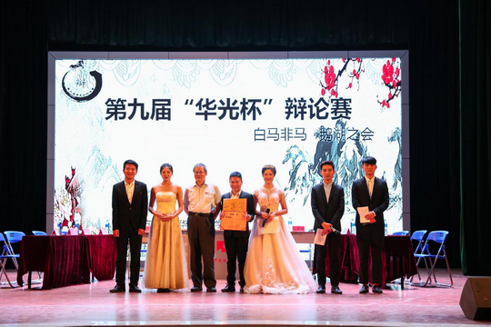 5月9日晚上,主题为“白马非马 鹅湖之会”的第九届“华光杯”辩论赛决赛在吴文季音乐厅举办。经过激烈的淘汰赛,本届辩论赛共有6支队伍进入决赛,分别是:校学生会代表队、校社团联合会代表队、青年志愿者协会代表队、校广播电台代表队、商学院代表队和建工学院代表队。我校副校长徐颖惠和各二级学院领导以及部分师生到场观看。