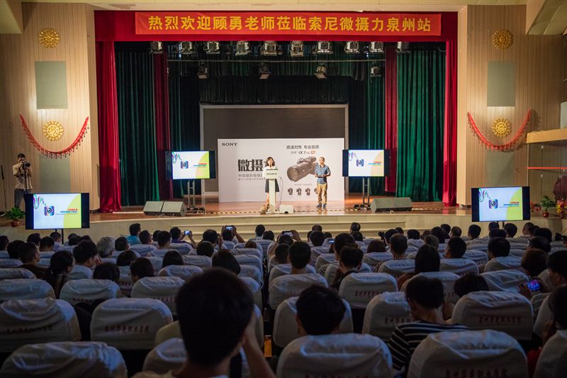 5月26日,由中国摄影报社、索尼(中国)有限公司主办,我校摄影学院和泉州市摄影家协会协办的“微摄力”中国摄影报摄影交流会泉州站在我校吴文季音乐厅隆重举行。中国金像奖得主、著名摄影家顾勇,中国摄影报社市场部主任杨扬、活动部项目主管夏雨欣,福建省摄影家协会副主席朱庆福 ,我校董事长吴其萃,校长陈雅芳,泉州市摄影家协会副主席陈英杰一行以及我校师生等参加本次活动。
