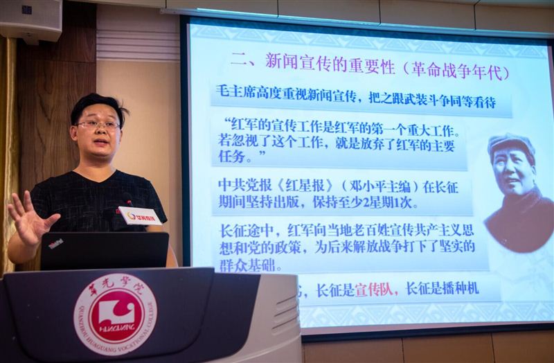 为提高新闻宣传质量,营造良好的舆论环境,6月6日下午,我校新闻中心在办公楼第二会议室举行新闻宣传专题培训,由办公室主任谢志贤作《大小兼顾,抓牢根本》的主题讲座,我校副校长吴华轩出席指导,新闻中心全体成员、各二级学院、部门通讯员和学生记者听取讲座,“华光在线”网络平台进行了全程直播。